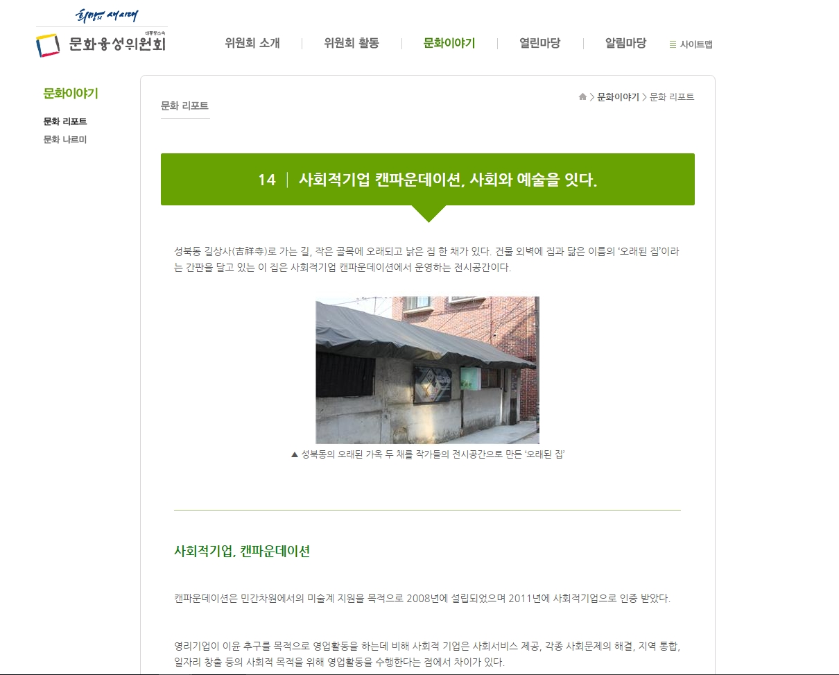 언론 보도 | [사회적기업 캔파운데이션, 사회와 예술을 잇다.] 문화융성위원회