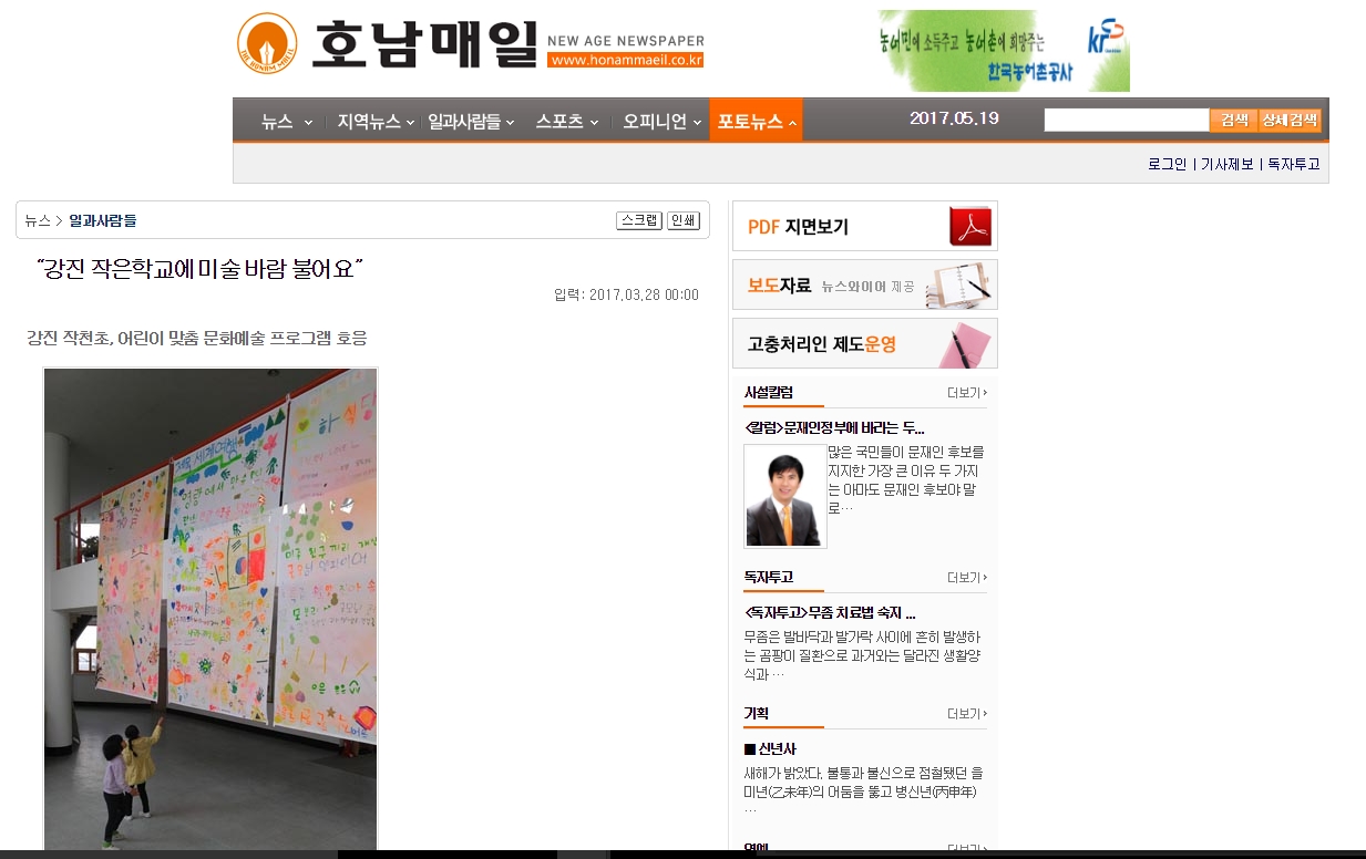 [ “강진 작은학교에 미술 바람 불어요”]호남매일