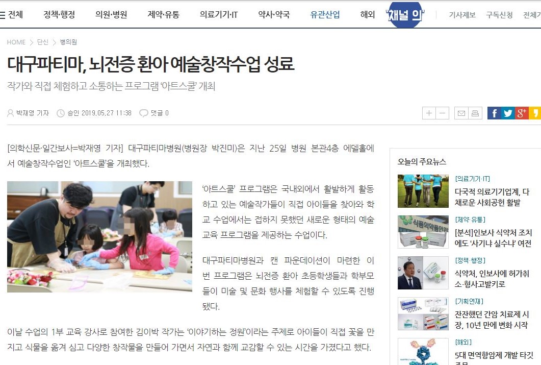 대구파티마병원에서 진행한 <아트버스 캔버스> 보도내용