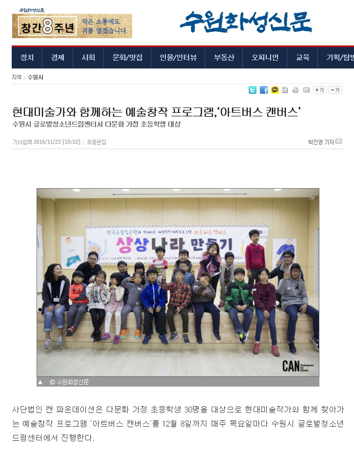 [현대미술가와 함께하는 예술창작 프로그램, ‘아트버스 캔버스’] 수원 화성신문