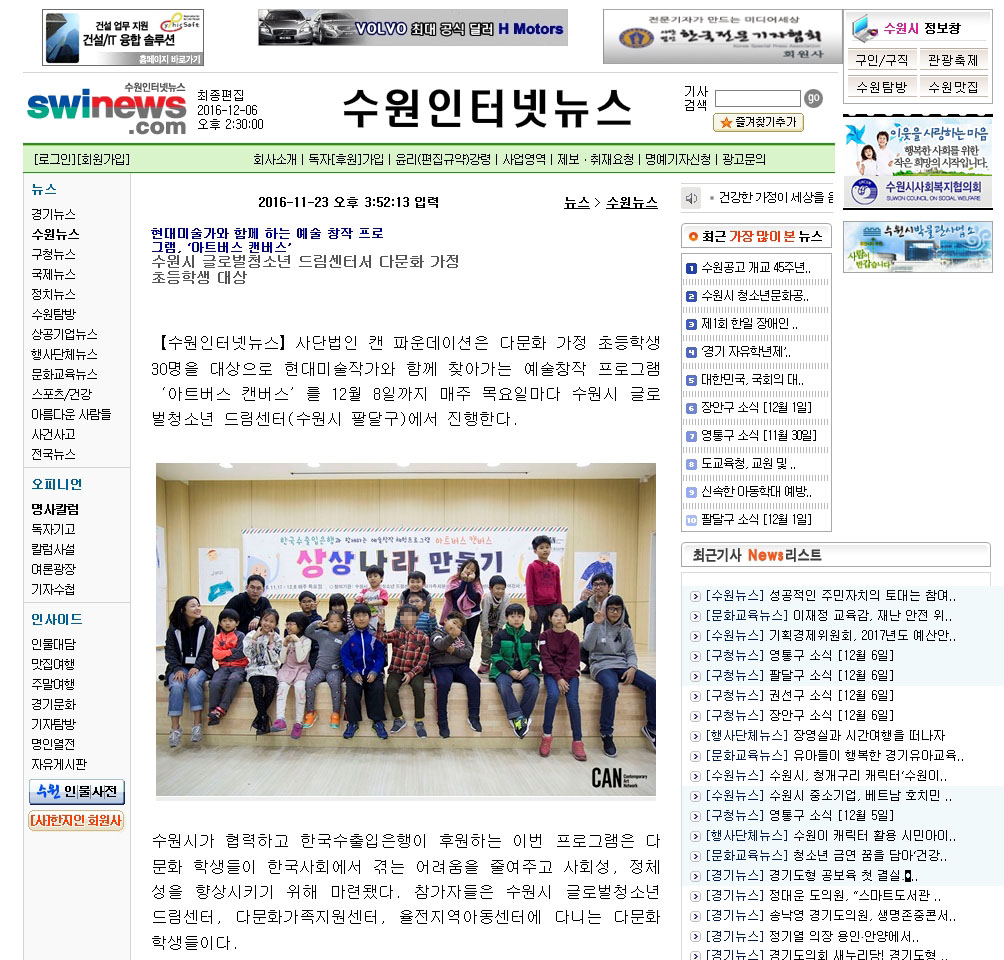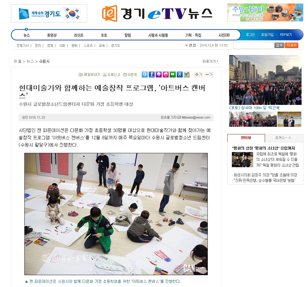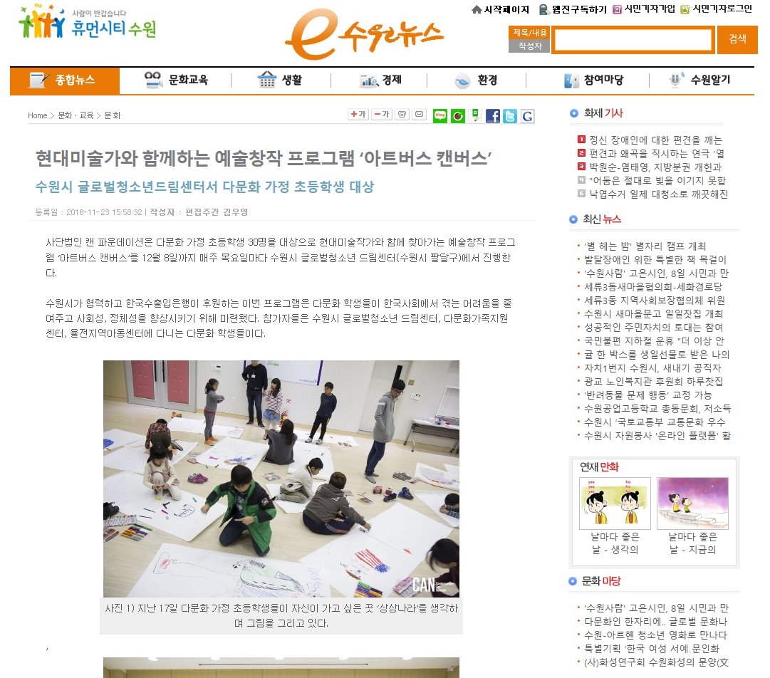 [현대미술가와 함께 하는 예술창작 프로그램, ‘아트버스 캔버스’]수원 인터넷 뉴스, e수원뉴스, 경기 e TV뉴스