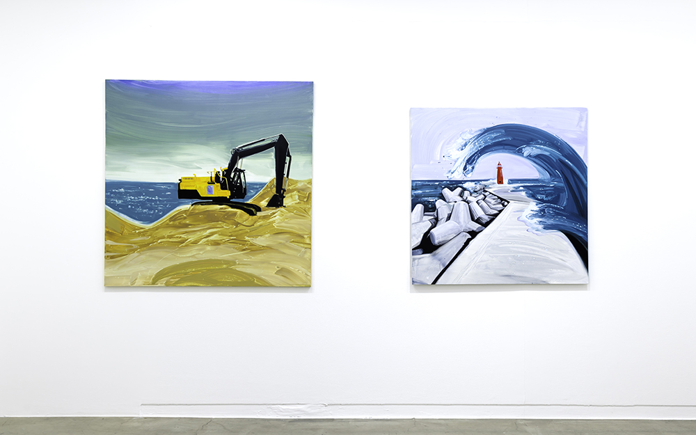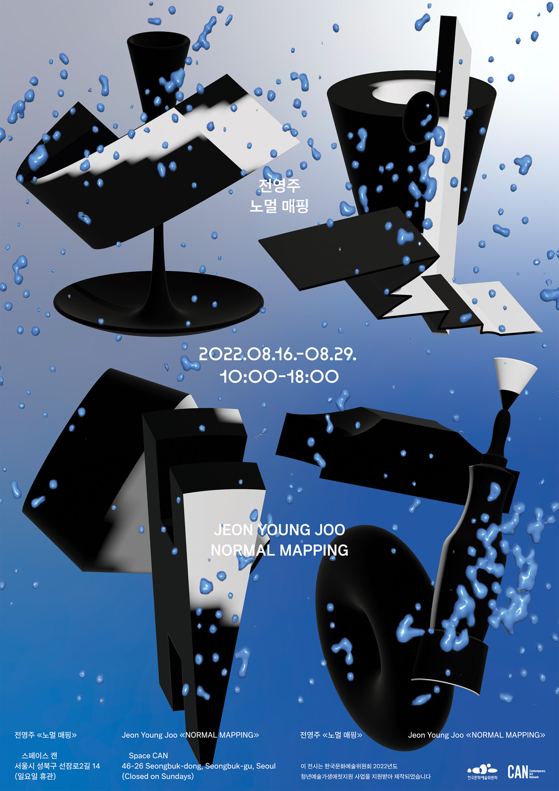 이번 전시에서는 3D 그래픽의 기술 ‘노멀 매핑(Normal Mapping)’을 차용하여 풀어낸 새로운 작품을 발표한다. ‘노멀 매핑’은 3D 프로그램 상에서 재현하고자 하는 물체 표면의 모든 요철을 그대로 구현하지 않고 세부 지점들을 평면으로 묘사하여 빛의 반사각을 지정하는 기술이다. ’Normal’은 ‘평범함’과 동시에 수학에서의 ‘법선’을 의미하며, ‘노멀 매핑’은 법선을 흔들어 입체처럼 보이게하므로 붙여진 이름이다. 이때의 그래픽 모형 각 단면들은 평면이지만 다채로운 굴곡을 지닌 입체처럼 보여지게 된다. 전영주는 이러한 그래픽 기술을 평면으로 입체를 흉내내기 위해 질감을 씌우는 기법으로 풀어낸다. 이를 통해 회화가 가진 평면성을 재정립하고 입체로의 가능성을 제시하고자 한다.