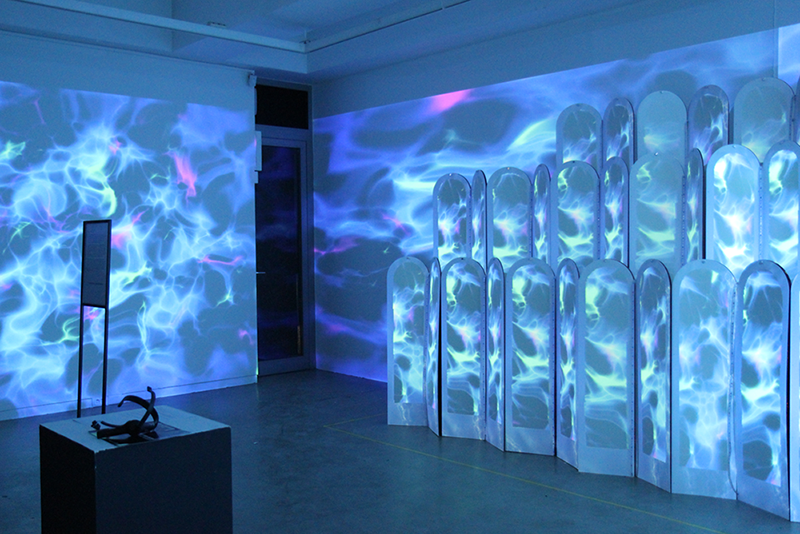 조은우 작가는 뇌파(생체신호/BIO Signal Interface)와 연동되는 로봇, 빛, 사운드 그리고 맵핑을 사용하여, “뇌파 인간 신세계 (Brainwave Human New World)”라는 과학 융복합 설치 작품을 기획 제작하였다. 작가는 매체의 확장을 위하여 전시 기간 중 작업과 일맥 상통하는 맵핑이 연동되는 뇌파 공연 전시를 병합하여 개최한다.