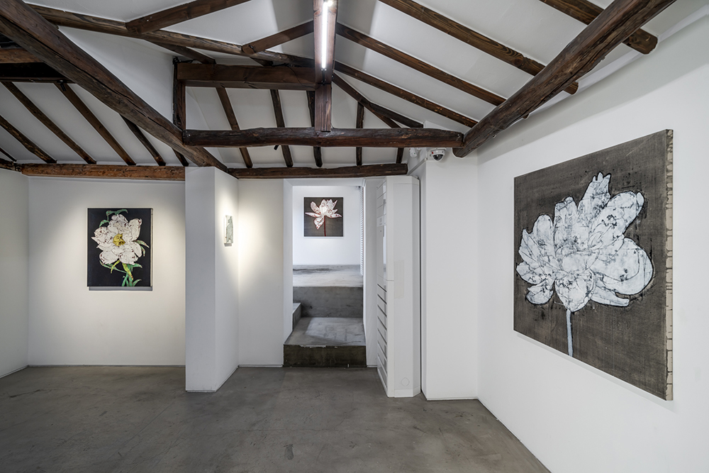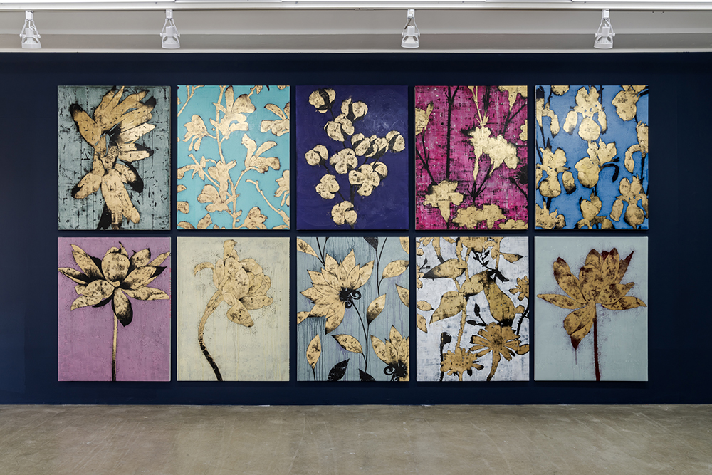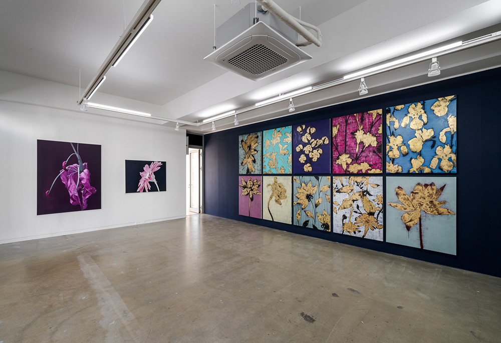 과거 작가의 작품에 등장하는 꽃은 시들거나 처음부터 생명이 없는 조화를 대상으로 하였다. 생명이 없지만 역설적이게도 정교한 묘사를 통한 완벽한 아름다움으로 표현된 작품은 화려한 욕망과 금새 시든 꽃의 공허 사이를 표현하였다. 작가의 신작 ‘석화lapidifier’도 이런 꽃의 연장선에서 탄생하였다. 금색의 화려했던 순간의 치열함이 탈락되고 굳어진 꽃은 아름다움이 사라진 꽃의 흔적이자 머문 욕망의 허탈함이다.
