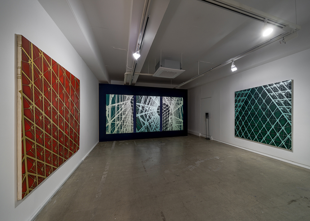 부산에서 나고 자란 작가가 프랑스로 유학을 떠난 시절, 작가는 한국과 다른 유럽의 건물에 매료된다. 하지만 이방인으로 바라본 유럽은 곁을 내어주지 않는 차가운 모습으로 다가왔다. 그것이 비단 유럽뿐이었을까. 잠시 머문 한국에서조차 또 다른 이방인으로 살아야 했던 그는 한국의 무역센터에 연결된 수없이 많은 건물의 선과 프랑스 루브르Louvre 박물관의 유리 피라미드에서 영감을 받아 ‘메탈리카 Metallica’ 시리즈는 탄생시켰다. 스페이스 캔 1층 전시에서 처음 마주하는 작품도 메탈리카 시리즈이다. 한 치의 오차도 허용하지 않는 듯한 곧게 뻗은 직선과 현대 문명을 상징하는 철골 구조는 획일화된 도시를 살아가는 현실의 실제적 구상이자 인간의 욕망을 대변하는 또 다른 추상의 형태를 담는다.