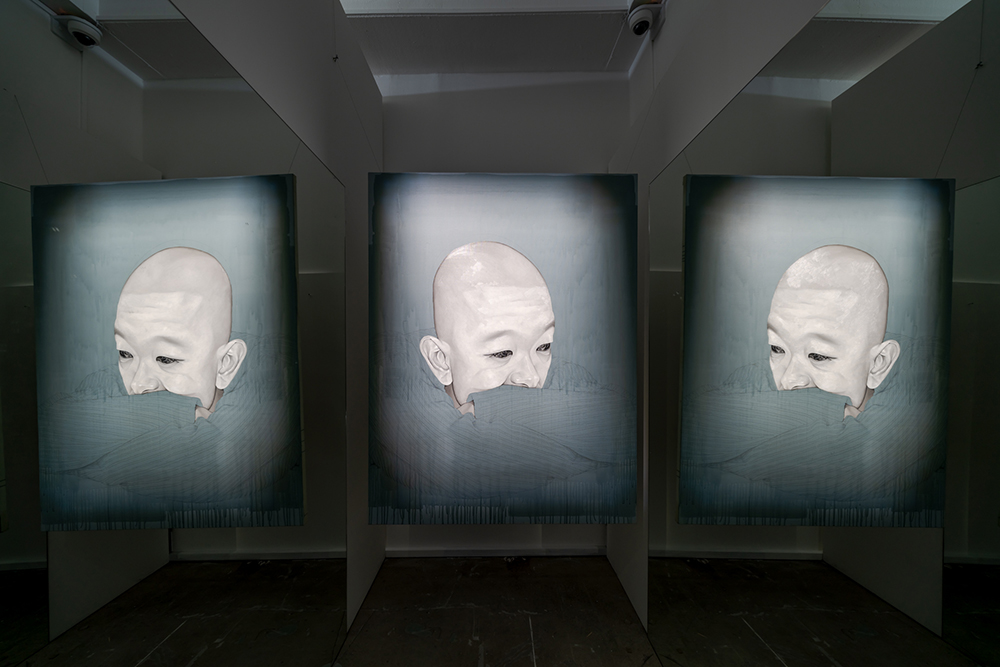 두터운 건물을 상징하는 가벽을 지나면 김성수 작가의 또 다른 시리즈 중에 하나인 ‘멜랑콜리Melancholy’ 작품을 만날 수 있다. ‘우울한 감정’을 나타내는 프랑스어 멜랑콜리에 등장하는 인물은 실존 인물이자 가상의 인물이며 현대인의 초상이다. 기록되지 않은 텅 빈 배경 속에 남겨진 인간의 공허한 눈빛은 화려하게 펼쳐진 메탈리카의 확장성을 순식간에 끌어당겨 심연의 공허함을 담아낸다. 무한히 이어지는 거울을 통해 관람자 스스로를 돌아보게 하는 멜랑콜리 작품은 사회 이면에 소외된 인간 자신을 살펴보게 한다.