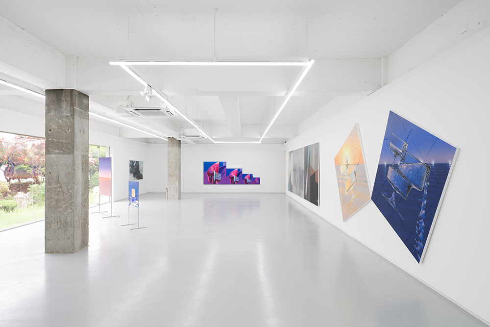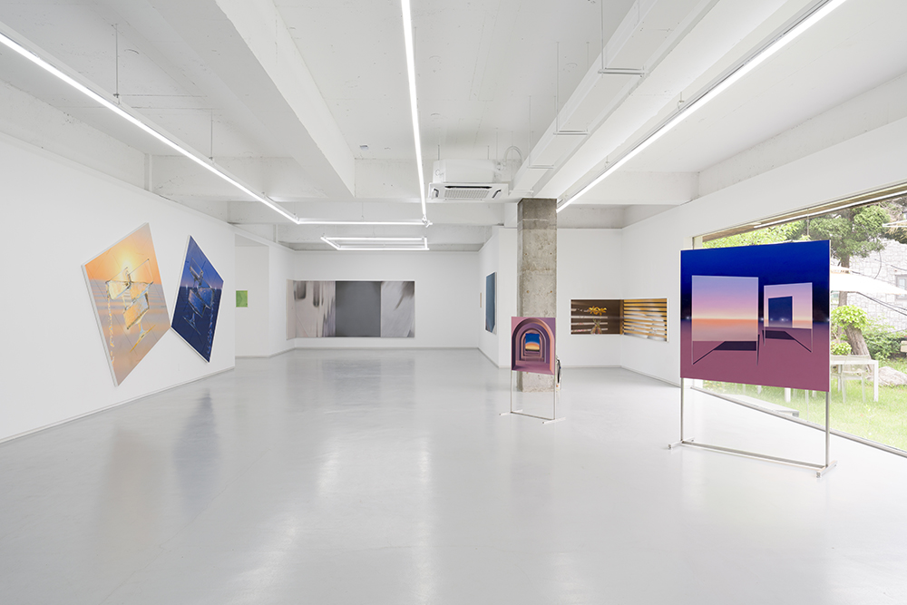 조효리의 회화는 감각의 흐름과 시점의 이동을 통해 시간과 공간을 회화적으로 재구성한다. 그는 3D 시뮬레이션 프로그램을 활용해 가상의 구조를 설계하고, 이를 평면이나 설치의 형식으로 옮긴다. 이 과정은 실제와 환영, 내부와 외부, 정지와 움직임이 교차하는 화면을 만들어낸다. 화면 속에는 유리잔, 반사면, 흐릿한 경계선처럼 감정의 잔상이 잠시 머물렀다 스며드는 장면이 자리 잡는다. 그는 시점을 고정하지 않고 이동시키며, 줌 인과 줌 아웃, 시야의 드래그와 같은 디지털적 시선을 회화로 번역한다. 이로써 하나의 화면 안에서 다층적인 감각 구조가 생성되고, 관객은 그 구조 속을 천천히 유영하듯 감각하게 된다. 조효리의 회화는 재현을 넘어서, 감각이 형성되는 구조 자체를 구성한다. 화면은 기억과 상상이 만나는 지점이 되고, 관객은 그 안에서 ‘보는 나’와 ‘보이는 것’ 사이의 긴장을 경험하게 된다. 《Suntint Oil》은 두 작가의 작업을 다시 마주하거나 처음으로 접할 수 있는 기회를 제공한다. 이미 알고 있던 작품이라도 새로운 맥락에서 다시 보는 경험이 될 수 있고, 처음 만나는 이들에게는 각자의 회화 세계를 감각적으로 탐색할 수 있는 출발점이 된다. 이 전시는 회화를 통해 감정을 어떻게 느끼고, 시선이 어떻게 머물거나 흘러가는지를 각자의 방식으로 경험하게 한다. 관객은 각자의 속도와 감각으로 작품과 마주한다. 《Suntint Oil》이라는 제목처럼, 감정과 시선이 잠시 머물렀다가 퍼지고, 다시 스며드는 시간이 되기를 바란다.