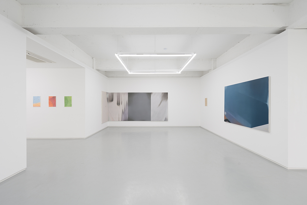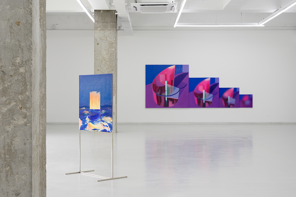 《Suntint Oil》이라는 제목은 이질적인 두 감각—차단과 흐름, 가림과 투명성—의 공존을 상징한다. 이 조합은 본래 존재하지 않는 언어, 일종의 ‘콩글리시(Konglish)’에서 비롯된다. ‘Suntint’는 실제 영어권에서는 사용되지 않는 표현으로, 한국에서 차량 유리의 자외선 차단 필름을 지칭하기 위해 만들어진 단어다. 영어 ‘Sun(태양)’과 ‘Tint(착색)’의 조합이지만, 영어 사용자에게는 낯선 이 단어는 언어의 틈에서 발생한 하나의 실수이자 창조다. 이 비틀어진 조어는 우리가 현실을 언어로 받아들이는 방식, 그리고 감각과 인식 사이의 간극을 드러내는 흥미로운 사례다. 이 전시는 그러한 비틀림에서 출발해, 회화가 단순히 현실을 재현하는 수단이 아니라 감각을 조절하고 세계를 새롭게 지각하게 하는 장치가 될 수 있음을 탐색한다. ‘Suntint’는 외부의 시선을 차단하면서 감각을 여과시키는 얇은 필름처럼, ‘Oil’은 천천히 흘러내리며 흔적을 남기는 유동적인 물성처럼 기능한다. 회화는 이 두 속성의 경계에서, 감각이 머물렀다가 흘러나가는 지점에서 작동한다.