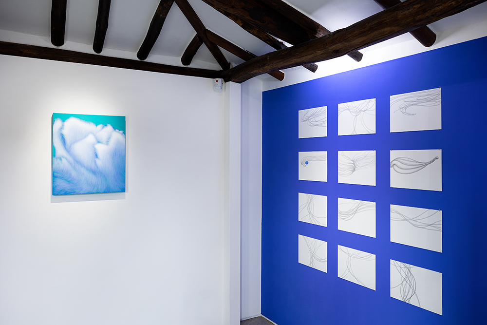 이 전시는 물길에서 마주한 살아 움직이는 숨(Breath)을 드러낸 드로잉과 회화 작품으로 구성된다. 물의 풍경을 따라간 길은 남해의 여수와 동해의 강릉이었다. 물과의 인연은 아이슬란드와 노르웨이 레지던시를 참여했던 시간으로 거슬러 올라간다. 진한 푸른 빛이 가득했던 한 겨울의 아이슬란드에서 매섭고 강렬한 바람과 깊은 바다를 마주했고, 상상 이상으로 웅장했던 대자연의 노르웨이에서 고요한 피오르드를 경험하며 물과 대화를 시작했다. 물이 바람과 빛을 만나 끊임없이 이어가는 대화에 몰입하면 숨이 멎을 듯 귓가에 어떠한 소리도 들리지 않는다. 그 순간 보고 있는 대상에 시선이 고정되어 비가시적인 영역을 탐지하듯 서서히 색이 연상되고, 감각과 감정이 외부의 자극과 함께 동시에 섞이기 시작한다.