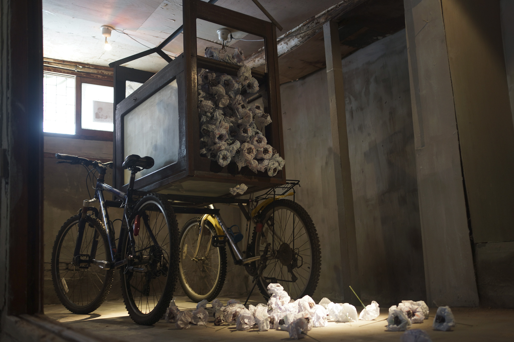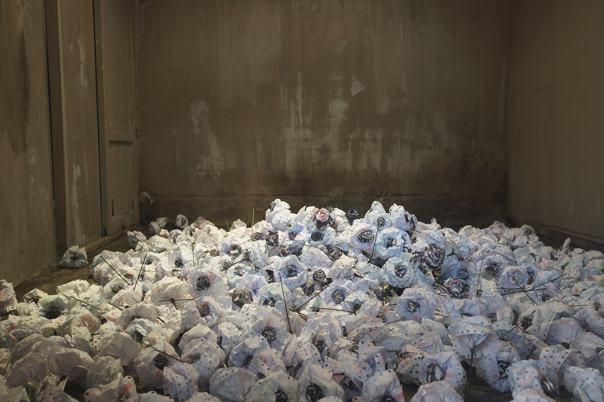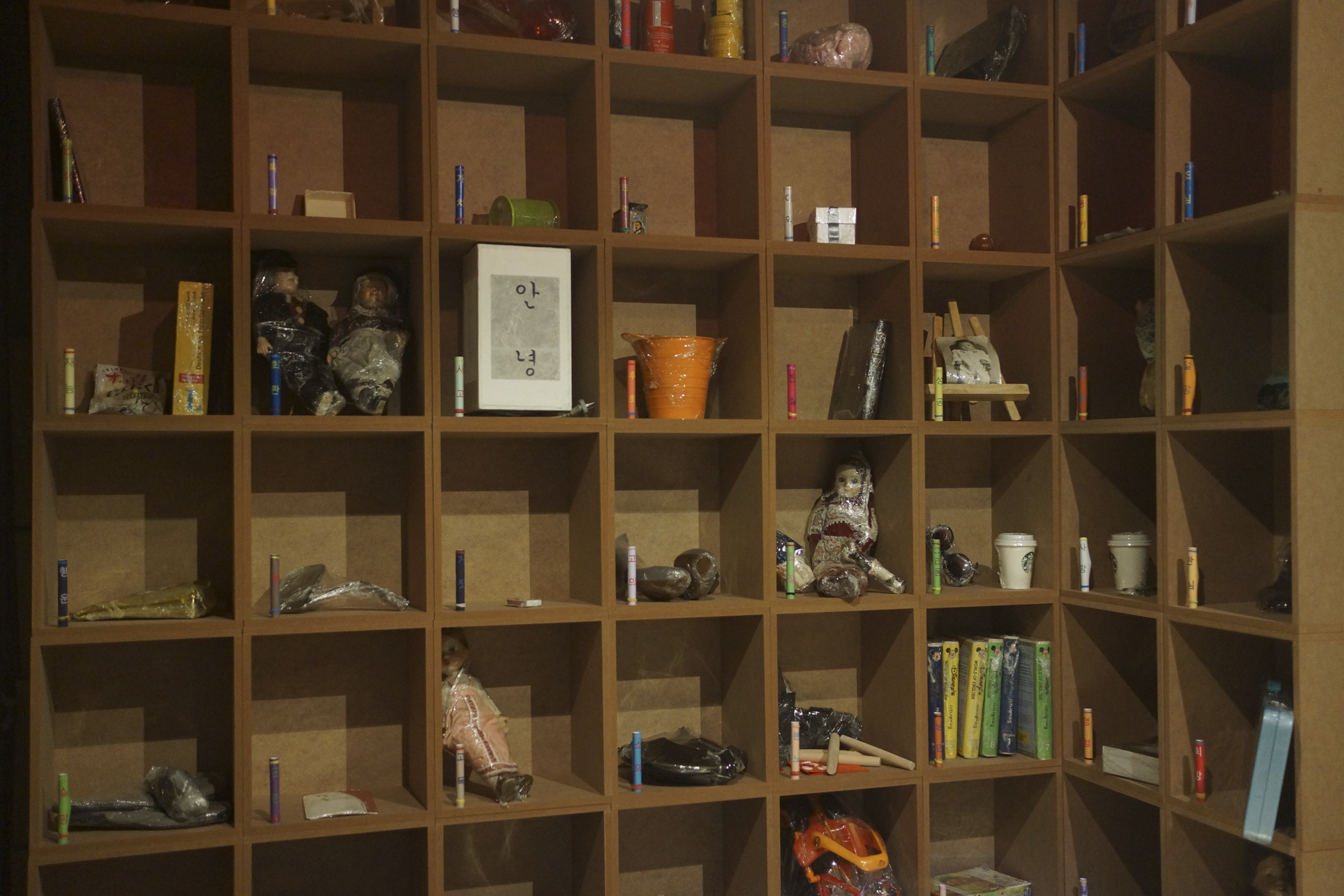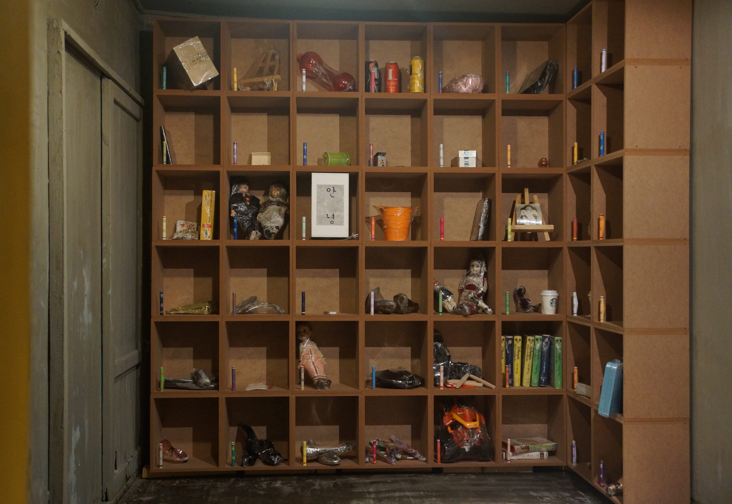 2. 한쪽 벽면엔 납골당의 형식을 빌어 버리고 싶은 것들을 무작위로 배열한다.