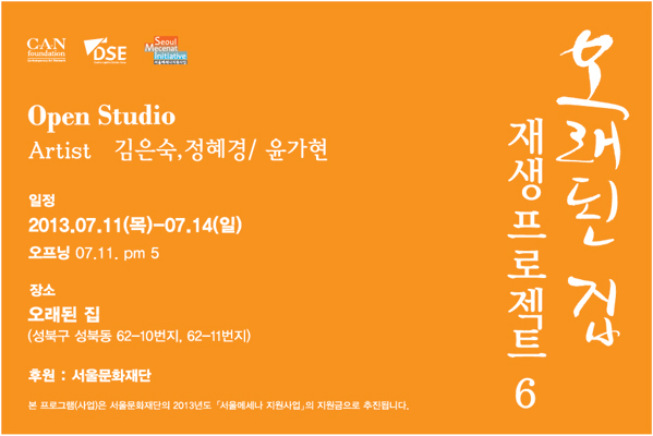 오래된 집 재생프로젝트는 캔 파운데이션에서 운영하는 레지던시로, 성북동에 위치한 오래된 가옥 두 채를 작가들에게 작업공간으로 개방하고 창작활동을 지원하는 프로그램이다. 올해로 5년째 진행중인 본 프로젝트는 지금까지 10명의 작가들이 거쳐갔다.