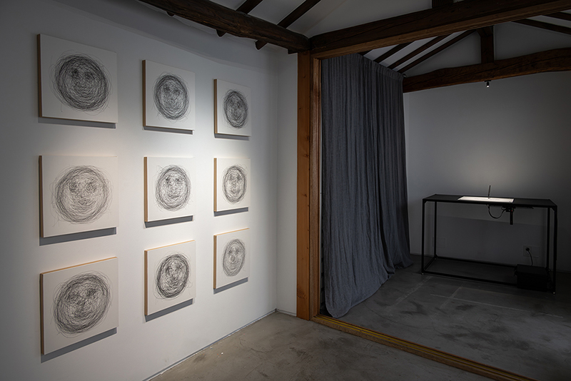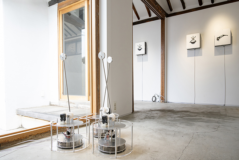 한편, 오래된 집에 펼쳐진 신민규의 작품은 일상 생활 속 풍경에 대해 작가가 갖는 내면의 체계와 기술의 체계를 가로지르며 제작되었다. 작가는 사생과도 비슷하게 인물이나 생활의 형태를 스케치하고 이를 기계화하는 작업 방식을 취하는데, 이는 아날로그와 디지털에 걸쳐 있는 작가의 세대적 특징을 떠오르게 한다. 오래된 집의 가장 안쪽에는 민찬욱 작가의 작품이 전시되어 있다. 민찬욱 작가는 인간과 기계의 관계에 대해 집중하면서 기계를 하나의 인격체로 상정하고 그 한계를 실험한다. 작가는 인간의 능력 중 하나로 여겨지는 창작을 시스템의 총체인 기계에 일임한다. 기계가 리드미컬하게 그려내는 여러가지 표정의 얼굴들은 그 자체로 낙서 같지만 하나의 군집을 형성하면서 충분한 작품처럼 보인다. 작가는 또 다른 타자로 규정되는 기계에 대해 어떠한 태도를 취할 것인지 관객에게 질문한다.