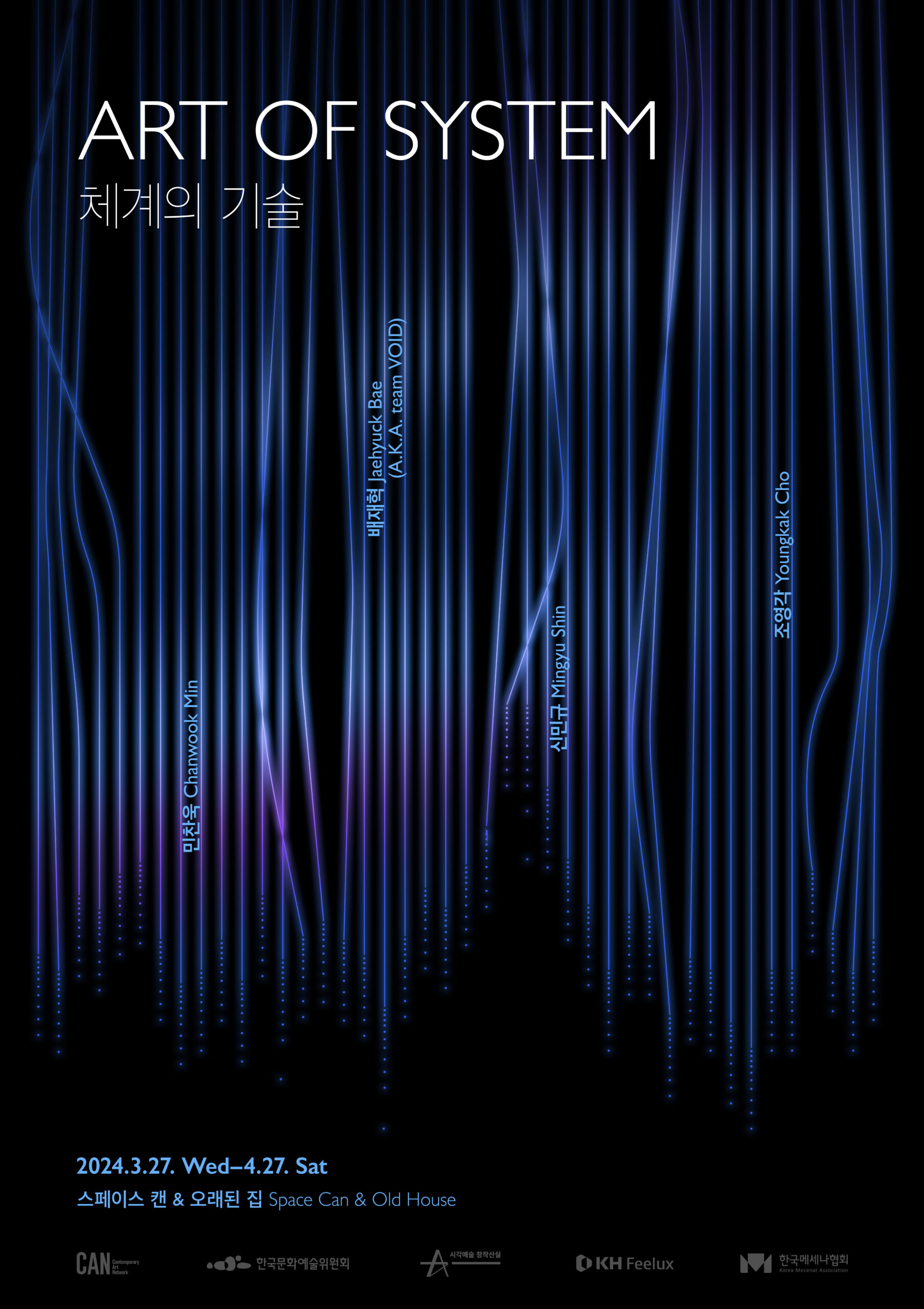 ‘시리’, ‘빅스비’, ‘챗GPT’, ‘인스타그램’과 같은 다양한 이름으로 세계에 자리잡은 뉴미디어 기술은 우리에게 무수한 정보를 주입하고, 전에 없던 커뮤니케이션을 발생시키며, 새로운 시공간을 구성하면서 개개인의 일상을 만든다. 이렇게 형성된 뉴미디어의 세계는 물리적인 개인의 연장이자 한편으로는 수신과 발신에 의해 작동되는 정보 값들이 주입하는 무한대의 시스템이다. 이번 전시에 참여하는 4인의 작가, 민찬욱(b.1984), 배재혁(b.1984), 신민규(b.1995), 조영각(b.1986) (가나다순)은 AI, 로봇, 빛, 비디오와 같은 물질과 비물질을 재료로 이 시스템을 다각적으로 시각화하는 작가들이다. 전시는 이 뉴미디어 기술을 이루는 시스템을 프리즘으로 삼아 이들의 작업을 살펴보고, 이 시스템이 작가들에게 어떠한 미적 실천을 추동시키는지 알아본다.