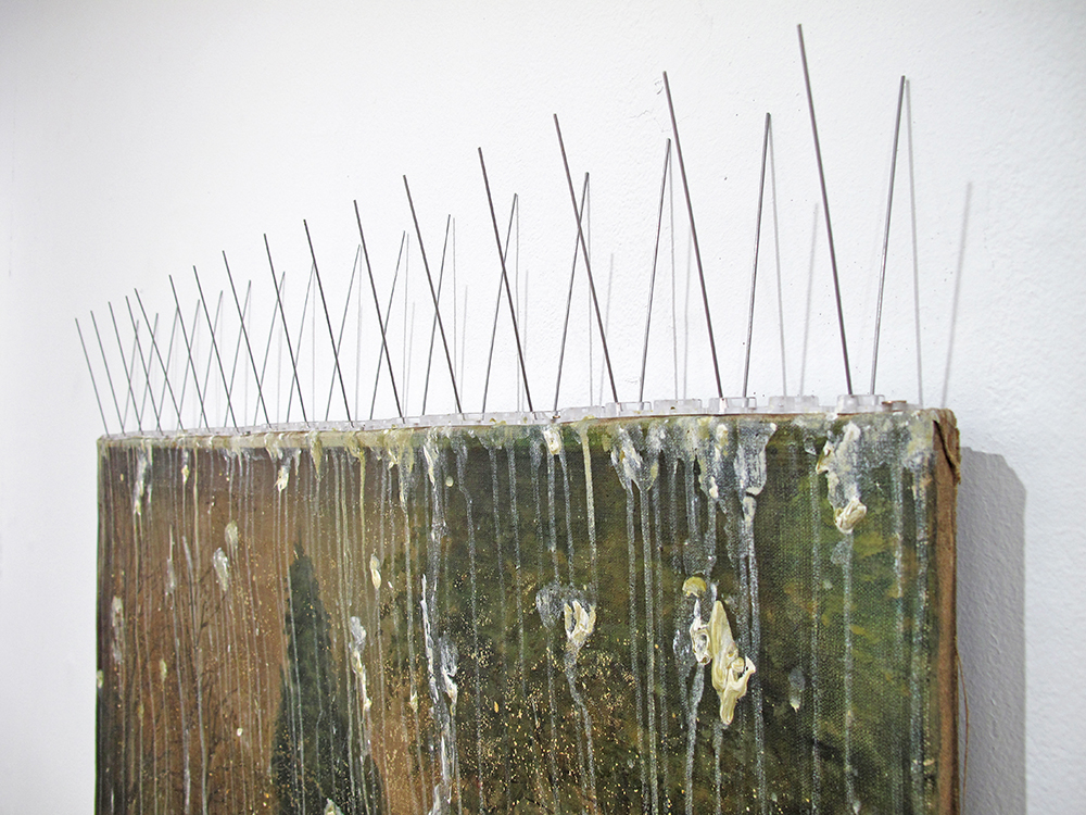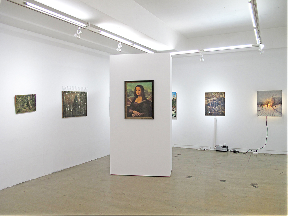 1. 벼룩시장이나 Ebay에서 구입한 오래된 그림들과 일상용품 또는 조명, 전동 기구가 결합한 회화+설치 작업이다. ‘그림 밖 풍경’은 공감각적 체험을 통한 감상 영역의 확장을 시도한 작업으로 전통적 회화를 감상하는 방식에 대한 의문을 제기한다.