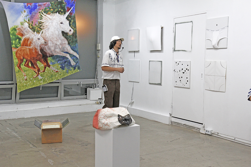 2. 회화라는 장르와 매체를 주제로 한 작업으로 ‘화가의 잡생각’이나 ‘표면에 색을 이용하여 그린 그림’ 또는 ‘평면 그림’ 인 회화의 사전적 정의와 형식을 재해석하고 그 새로운 가능성을 탐구한 작업이다. 새 작업의 실제 재료로 사용되기도, 작업 주제로 활용되기도 하는 회화의 두 형태적 접근방식을 통해 작품이 전시장에서 관객과 만나는 순간까지를 작업의 일환으로 본다. 때문에 기존의 작가가 작업을 전시하고 관객은 작업을 관람하는 일방적 소통방식에서 벗어나고자 했다. 이번 전시에서는 관객과 작업이 일대일로 만나, 더욱 능동적인 감상과 사유가 일어날 수 있도록 하였다. 관객이 직접 만지고, 작동하고, 경험하면서 관객 스스로가 작업 일부가 되었으면 한다.