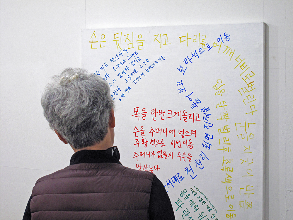 우리는 장난스럽다 할 수도 있지만 실은 진지하다. 화가는 진지하다고 말하지만 우리가 보기엔 장난스럽다. 사실 진지와 장난 그사이의 경계도 명확하지는 않다. 우리는 우리의 삶에서 얼마나 많은 질문을 나열하고 있는가? 정답을 알고 있는 사람들은 많아도 자신만의 애틋한 질문을 자신 있게 이야기하고 나누는 사람은 드물다. 왜냐하면, 우리 주변에는 이미 정답을 알고 있는 사람들이 너무 많기에. 나의 질문과 의문을 꺼내는 즉시 나의 질문은 본의 아니게 더 이상 질문이 되지 못한다. 작가는 자신만의 질문들로 우리에게 다른 시각을 제시한다. 그런 작가의 의도를 이해하려고 노력하는 과정에서 우리의 생각은 어느덧 우리도 모르게 말랑말랑해지고 경계라는 주제에 대해서 잠시 심도 있는 생각을 해보게 된다.