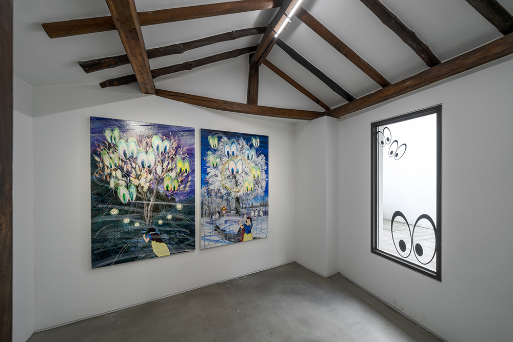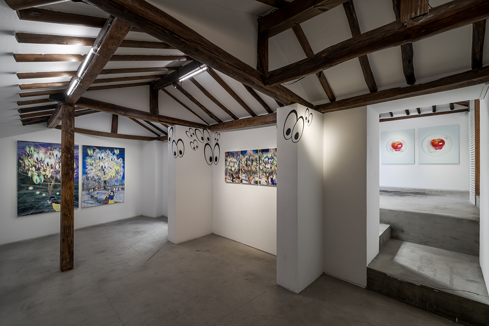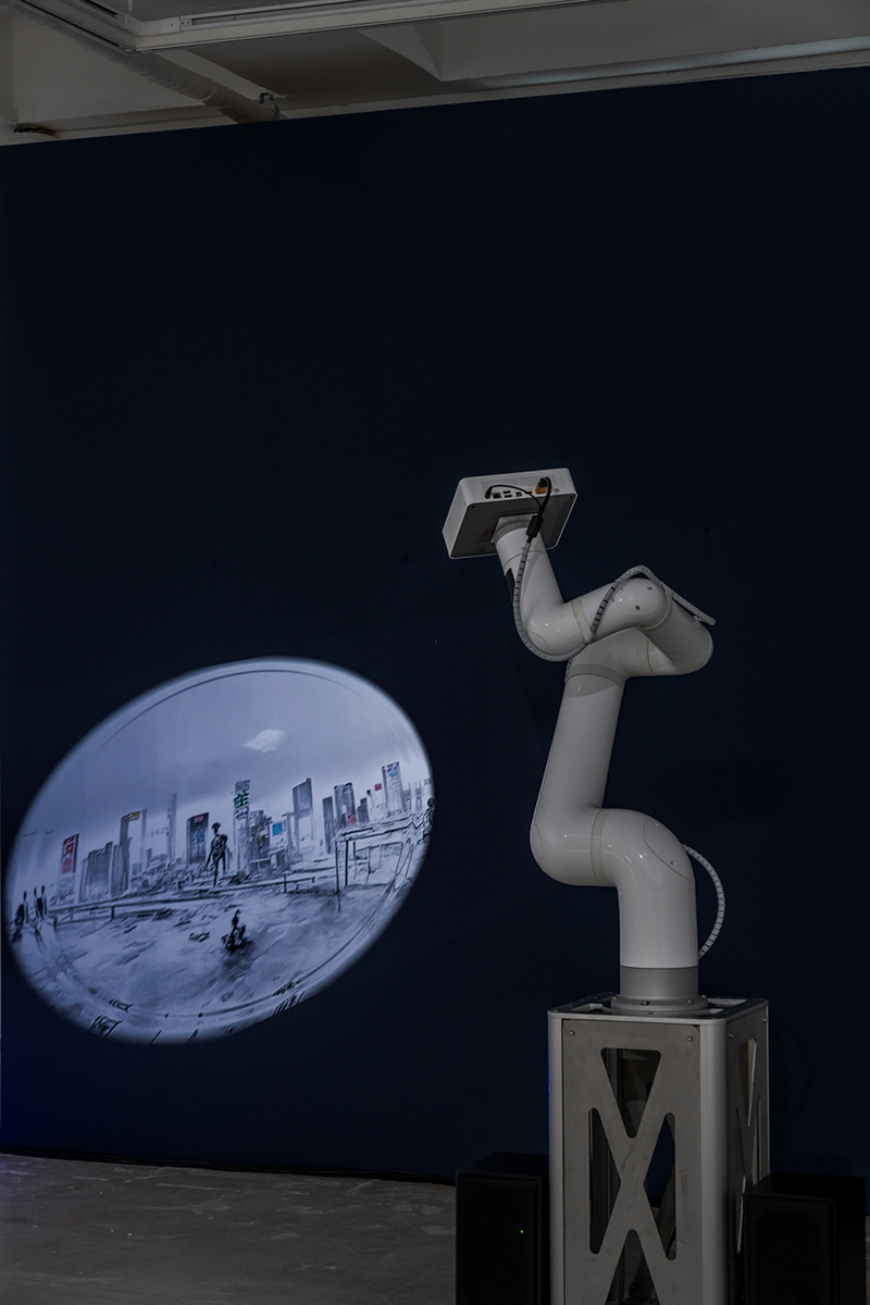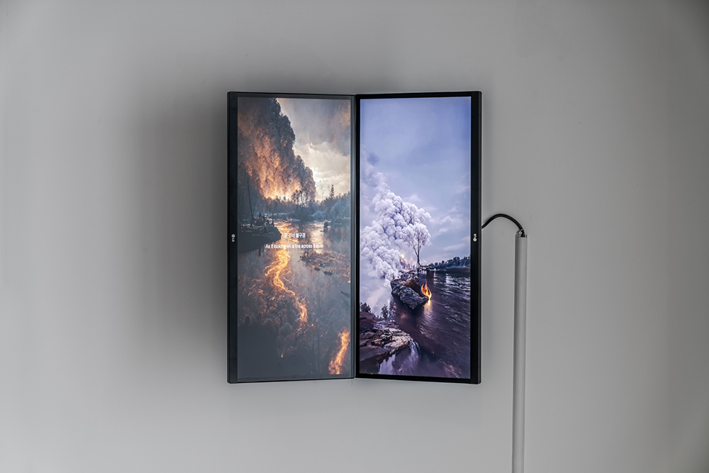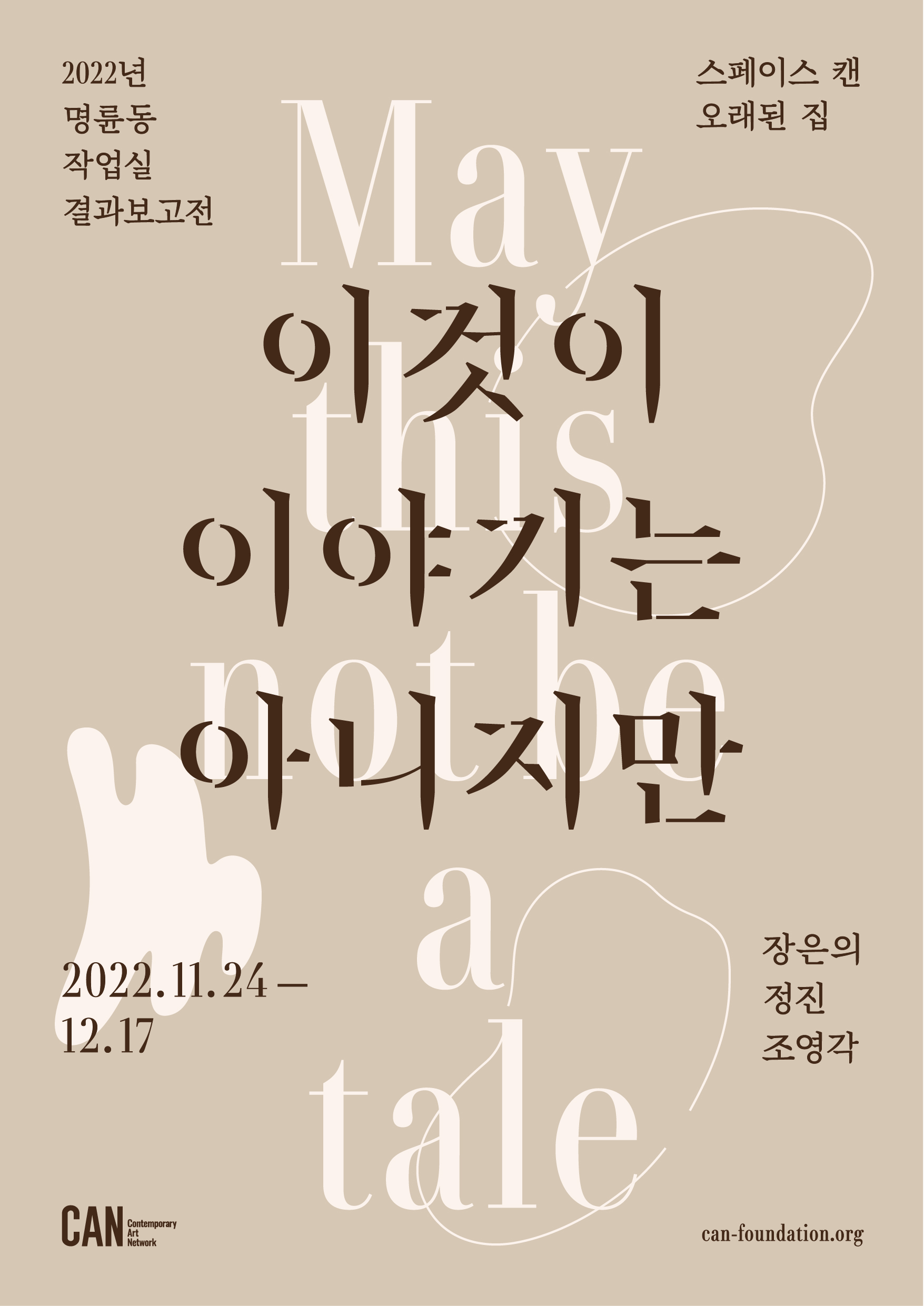 캔 파운데이션은 2022년의 마지막 전시로 명륜동 작업실 입주작가 3인의 ≪이것이 이야기는 아니지만≫을 개최한다. 올해 초 명륜동 작업실에는 장은의(b.1974), 정진(b.1984), 조영각(b.1986) 작가가 입주하였고, 캔 파운데이션은 입주작가들의 활동을 실질적으로 지원하기 위해 이전과는 또 다른 시도들을 전개하였다. 더 프리뷰(The Preivew) 아트페어 부스 운영, 전문가 초대 프로그램, 외부 전시 및 교육 프로젝트 참여에 이르기까지 다각적으로 프로그램을 진행하면서 3인의 작가들과 보다 긴밀하게 소통하려 노력하였다. 그 1년의 시간을 마무리하는 마지막 프로젝트가 다름아닌 결과보고전이다. 3인의 작가는 각자가 몰두하는 작업의 영역은 다르지만, 이야기로부터 시작한다는 방법적 공통점을 갖고 있다. 이야기와 이미지가 역사적으로 끊임없이 공존과 교환을 거듭하고, 때로는 대치하거나 혹은 융합을 모색하며 의미를 생산해왔다는 사실을 떠올려볼 때, 이번 전시에서 세 명의 작가가 어떠한 태도로 두 영역 사이를 가로지르는지에 대해 살펴보는 일은 흥미롭게 다가온다. 장은의는 과일과 그릇, 일상의 평범한 사물들을 유화 물감을 재료로 정교하게 그린다. 그림은 정물화처럼 보이지만, 작가는 인물을 그리는 초상화이자 추상화라고 말한다. 작가는 그림을 그리기 전 만났던 사람들에 대해 그리고, 과일이 나타내는 자연의 원과 그릇의 인공적 원 사이의 긴장과 조화로부터 서로 다른 세계가 공존하는 방법을 그려내내고자 하기 때문이다. 이번 전시에서 선보이는 작가의 신작들과 스페이스캔 계단 공간의 실내 풍경 역시 작가가 독일에서 만난 한 사람에 대한 이야기이다. 특히 실내 풍경은 작가가 이 사람을 반복적으로 떠올리게 된 동기가 되었던 장면을 그린 작품이다. 이처럼 작가는 작품에 인물과 관계에 대한 이야기를 담아낸다. 이 과정은 작업방식으로부터 유추되는데, 작가는 작품을 그리기 전, 과일들과 그릇, 빛 같은 환경적 요소들을 조율하여 먼저 촬영하고 캔버스에 옮기는 작업방식을 취한다. 이 같은 작업 과정은 작가가 일상적 사물에서 카메라라는 장치에 의해 한 차례 시점을 이동하는 행위처럼 보인다. 사물과 그림 사이에 발생한 이 거리는 작가에게 있어서 이야기와 이미지 사이의 거리이기도 하고, 한편으로 그림에 이르기까지 내면의 기억과 관계에 대한 이야기를 쌓고 풀어내는 하나의 공간이 된다. 정진은 만화나 설화, 동화, 애니메이션의 모티프와 이미지를 연구하고 이를 중첩시키며 화면 안에서 이야기를 구성한다. 작가의 화면 속에서 주인공처럼 등장하는 인간의 몸은 인간이 가진 사회적, 시대적 욕망을 상징하는 이미지라고 생각되는데, 작가는 시대를 구분치 않고 동서양의 다채로운 이야기들을 출발시키는 것은 이야기 속 누군가의 욕망이라고 말한다. 금번 전시에서 작가는 작품에 나타난 눈 모티프를 시트지로 제작하여 공간 안에 설치한다. 작가가 그린 화면 속 화자는 그 욕망을 안팍으로 확장시키며 끊임없이 이야기를 생산하는 듯 보인다. 작가의 작품들은 움직임이나 상황을 나타내는 이미지와 모티프, 감정과 긴장을 일으키는 효과선들을 통해 이미지를 서사처럼 바라보게 하지만, 회화의 속성 안에서 이 서사는 기승전결이라는 본디의 구조와 완전히 다른 주관적인 방향으로 풀이된다. 이 지점에서 정진 작가의 그림은 서사를 가진 회화라기 보다 그 자체를 해체하는 작업임을 알 수 있다. 작가는 오히려 서사를 제시하기보다 역으로 서사를 숨기고 알 수 없게 한다. 상황을 제시하지만 그 상황 역시도 여러가지를 화면 안에 동시에 발생시키거나 패턴으로 덮어버리면서 수수께끼 같은 그림의 해설을 관람객에게 요청한다. 조영각은 다양한 AI 기술을 활용하여 영상과 사진 작업을 자동 발생시키고, 이를 설치 작업으로도 전개한다. 다양한 텍스트를 AI에게 학습시켜 만든 영상이나 AI가 창작한 소설을 기반으로 제작한 작품들은 보는 이로 하여금 AI가 소통이 가능한 또 다른 세계의 주체처럼 여기게 한다. 특히 스페이스캔 1층의 로봇은 프로젝터를 장착하고 움직이면서 AI가 제작한 추상적인 미래 서울의 모습을 보여주며 낯선 생명체와 같다는 감각을 느끼게 된다. 다른 세계를 이해하기 위해서는 서로의 언어를 익혀야 하고, 실상 하루에도 몇 번씩 디지털 세계와 물리적 세계를 자유롭게 오가는 우리는 비가시적 디지털 언어의 안내를 받고 있음에도 그 언어에 그리 관심을 갖지 않는다. 하지만 작가는 이 같은 언어의 차이를 인지하고 탐구한다. 그리고 이 차이는 결국 우리 사회, 세계를 경계짓는 구조임을 작가는 이해하며 AI를 타자로 인정하고, 디지털 세계와 물리적 세계의 화해를 꿰한다. 세대시간을 통과하며 미술은 기술과 영향을 주고받으면서 변화했다. 기술이 주는 균열은 불안과 두려움을 초래하나 그 세대의 미적 충동을 추동시키기도 하는 것이다. 작가는 기술 환경의 언어와 우리의 언어를 미술로 엮으며 다가올 새로운 감각과 이야기를 내다본다. 세 명의 작가는 이야기와 언어에 대해 고민하며 이를 스스로의 조형언어로써 해석하고 변주하면서 작업을 