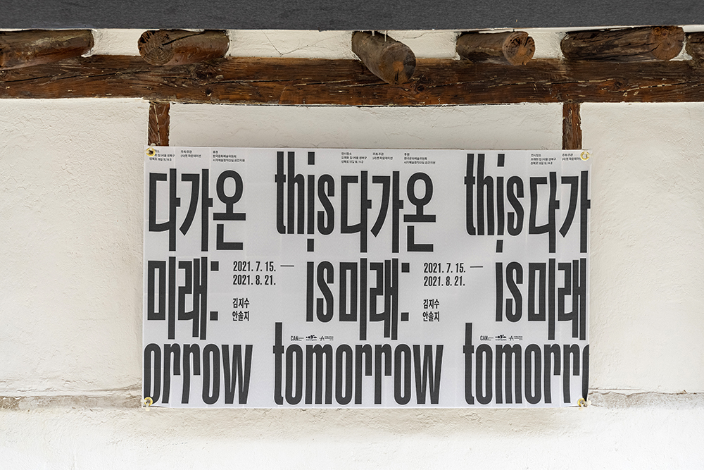 This is tomorrow : 다가온 미래로 번역한 이번 전시는 1956년 영국 화이트채플에서 건축가, 화가, 조각가 등의 다양한 장르의 예술가들이 모여 대중 소비 사회의 도래와 현실에서의 영향을 비평적 시각으로 기획한 전시 제목에서 출발한다. 코로나19로 인해 준비 없이 다가온 미래 사회에서 역병으로 인한 일상의 통제와 상실된 감각, 온라인으로의 변화에 휩쓸리는 현대미술의 방향성을 작가들과 함께 실험해 보고 디지털 환경으로 변화된 삶의 태도를 다양한 방식으로 표현하고자 했다. 그러기 위해 대면과 비대면 전시가 동시에 진행되는 현 상태를 반영해 온라인 vr전시와 오프라인 전시를 동시 진행한다. 동일한 전시 제목으로 1부와 2부에 나누어 진행되는 이번 전시의 첫 시작은 김지수, 안솔지 작가가 진행하게 되었다.