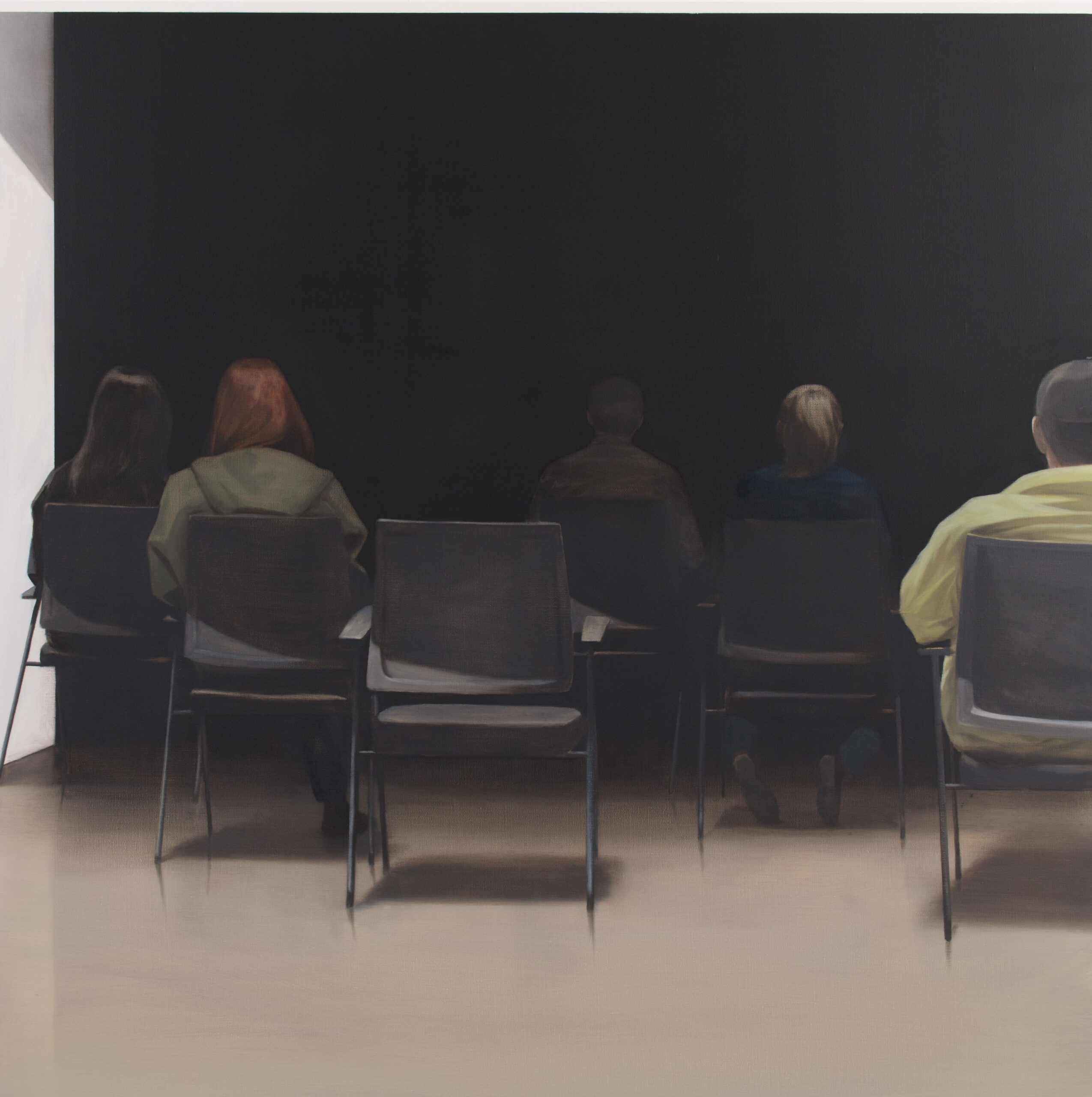 ‘없음’을 말하는 부재는 것은 형체가 없다. 그럼에도 이 ‘없음’을 그려보고자 했다. 그렇게 부재를 담는 시작으로 빈 의자와 어두운 실내의 모습처럼 부재를 떠올릴 수 있을 것 같은 장면을 찾아서 그려보고 있다.