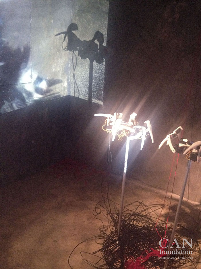 언제부터 나와 내 주변의 삶이 전쟁터와 같다는 생각을 한다. 미치듯 격렬히 싸워 가지지 않으면 존재의 끝을 볼 것만 같은 총체적인 불안은 존재하는 관계를 다양한 종류와 층위의 네거티브 피드백으로 점철시킨다. 아귀(餓鬼)다툼이다. 그것은 집이라는 아주 사적인 공간에서부터 직장, 학교, 의회, 국회, 농성장, 전쟁터 등의 다양한 공적 공간까지 증오와 원망, 분노의 참을 수 없는 분출과 격한 물리적 충돌을 동반한다. 탐욕과 몰이해, 동물적 감정과 생존에의 본능은 이성적 인간을 삼키고 인간을 격하게 꿈틀거리게 한다. 나는 약간은 어둡고 습기 찬.. 사람의 기억, 묵은 감정, 공간의 괴기함이 함께 뒤섞여 있는 곳이 필요했다. 거기서 나는 “아귀다툼”이라는 다소 불편한 주제를 두고, 미디어실험과 설치로 공간을 재구성 해보고 싶다. 축축한 장마와 무더위의 기간 오래된 집은 이러한 아귀다툼의 기억과 네러티브를 담고 있는 공간이 된다. 사적인 공간으로서 오래된 집은 몇 가지 층위로 다툼을 상징화, 시각화하는 공간이 된다. 이것은 예전에 이 공간을 살았을 법한 가상의 부부 사이에 일어 났을 수도 있는 그들만의 은밀하고 집요했던 갈등과 이후의 깊은 상처에 대한 기억이라 할 수도 있겠다. 오래된 집은 이들의 전쟁터이자 외부로부터 이 사적인 전쟁을 은닉시키는 역설적 방공호이다. 공간은 이들 부부의 서로에 대한 비난과 절규, 외침의 소리들로 둘러싸여 있고, 곳곳에 이들 다툼의 흔적들을 관객은 더듬어 나간다. 이것은 영상과 오브제의 상징적 배치를 통해 집의 현관을 들어서며 부터 나오기까지 연결된 가상적 네러티브를 완성한다. 상징과 보완의 장치로서 나는 여기에 덧붙여 동물적, 기계 생명체적 요소를 함께 접목하고자 한다. 눈에 보이는 감정적이고 격렬한 다툼은 이들의 몫이다. 그러나 그것은 더 이상 그들의 다툼이 아닌, 우리의 전쟁터를 연상시킨다. 전시의 일환으로 Ulay와 Abramovic의 1978년 “AAA-AAA” 퍼포먼스를 성북동의 오래된 집에서 재현해 보고자 한다. 이는 작가가 열혈예술청년단의 성혁과 홍승비를 초청한 콜레보레이션 퍼포먼스이다.